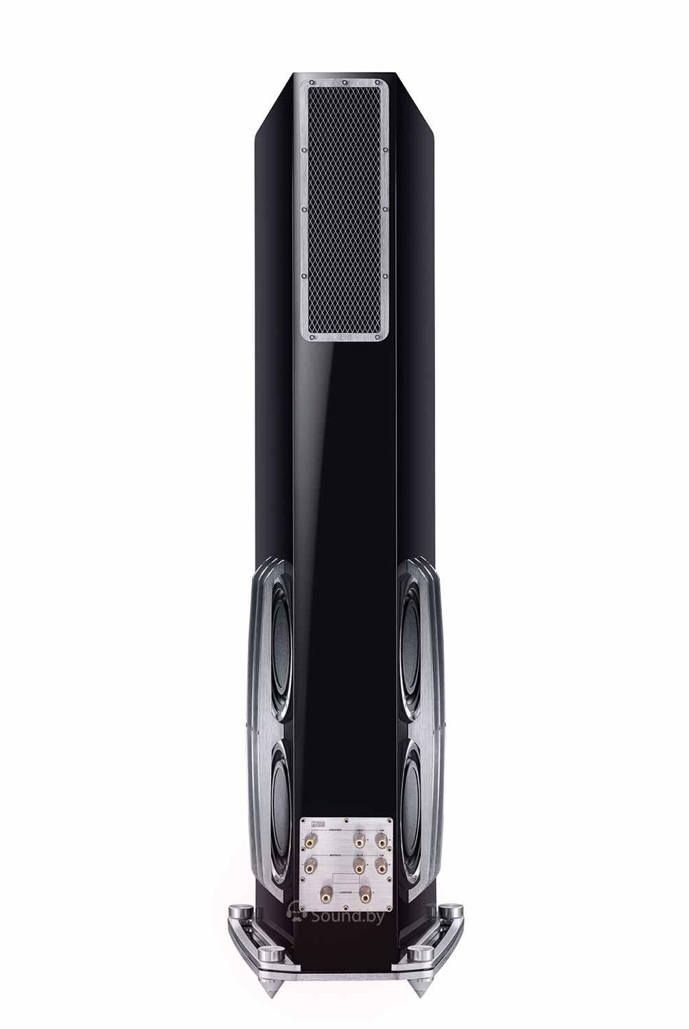 Все эти бескомпромиссные компоненты установлены в прочный корпус с совершенными акустическими свойствами и формой и непревзойденной отделкой. Классический черный зеркальный цвет благородного рояльного лака великолепно контрастирует с элементами из цельного брашированного алюминия, дополняющими АС, как визуально, так и конструктивно.