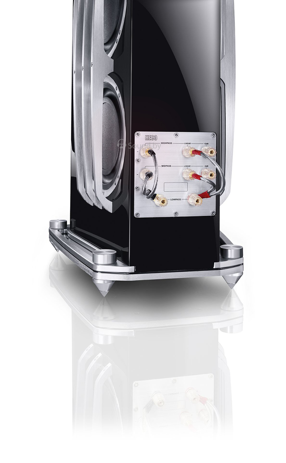 Два 8” вуфера из оптимизированной для НЧ бумаги «HECO kraft paper cone» плюс четыре 8” пассивных радиатора, для точного и монументального нижнего диапазона