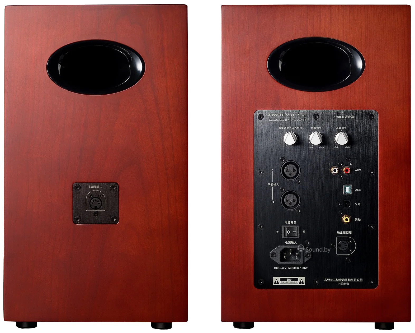 Корпуса A300 построены из 25мм жесткого MDF с вишневым шпоном, отделанным в атласном лаке. Крепкие внутренние крепления поддерживают и стабилизируют драйверы и устраняют резонансы корпуса до минимума. Чтобы еще больше уменьшить окрас звучания, внутри корпуса полностью покрыты звукопоглощающим материалом с волнообразным поверхностью, толщиной 36 мм.
