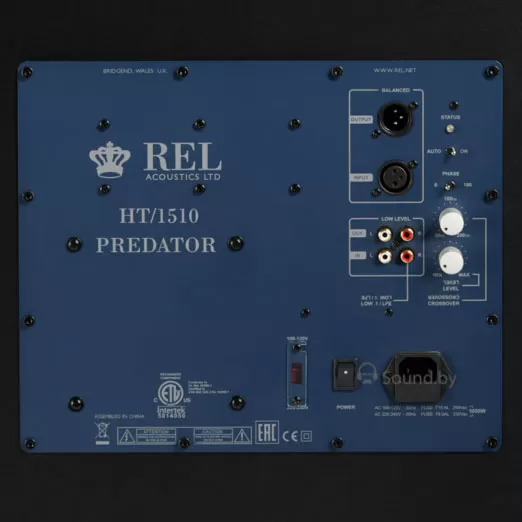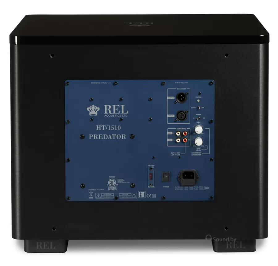 Для подключения к системе в сабвуфере предусмотрены линейные и LF-входы на RCA, а также балансный LF-вход на разъеме XLR. Кроме того, REL HT/1510 Predator оснащен транзитными выходами для последовательного подключения нескольких сабвуферов к одному источнику сигнала.