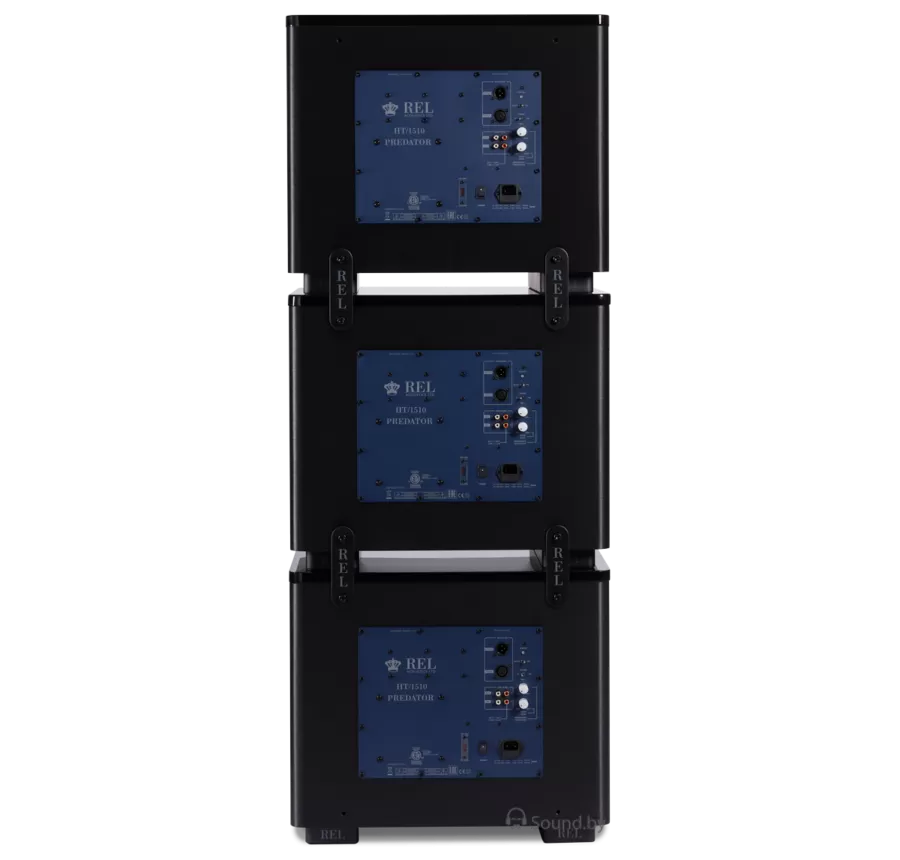 В случае построения системы в такой конфигурации несколько сабвуферов можно установить один на другой, для чего в верхней панели предусмотрены специальные углубления для опор. REL HT/1510 Predator по-прежнему имеет сравнительно компактные размеры, однако его вес значительно вырос по сравнению с предыдущей моделью.