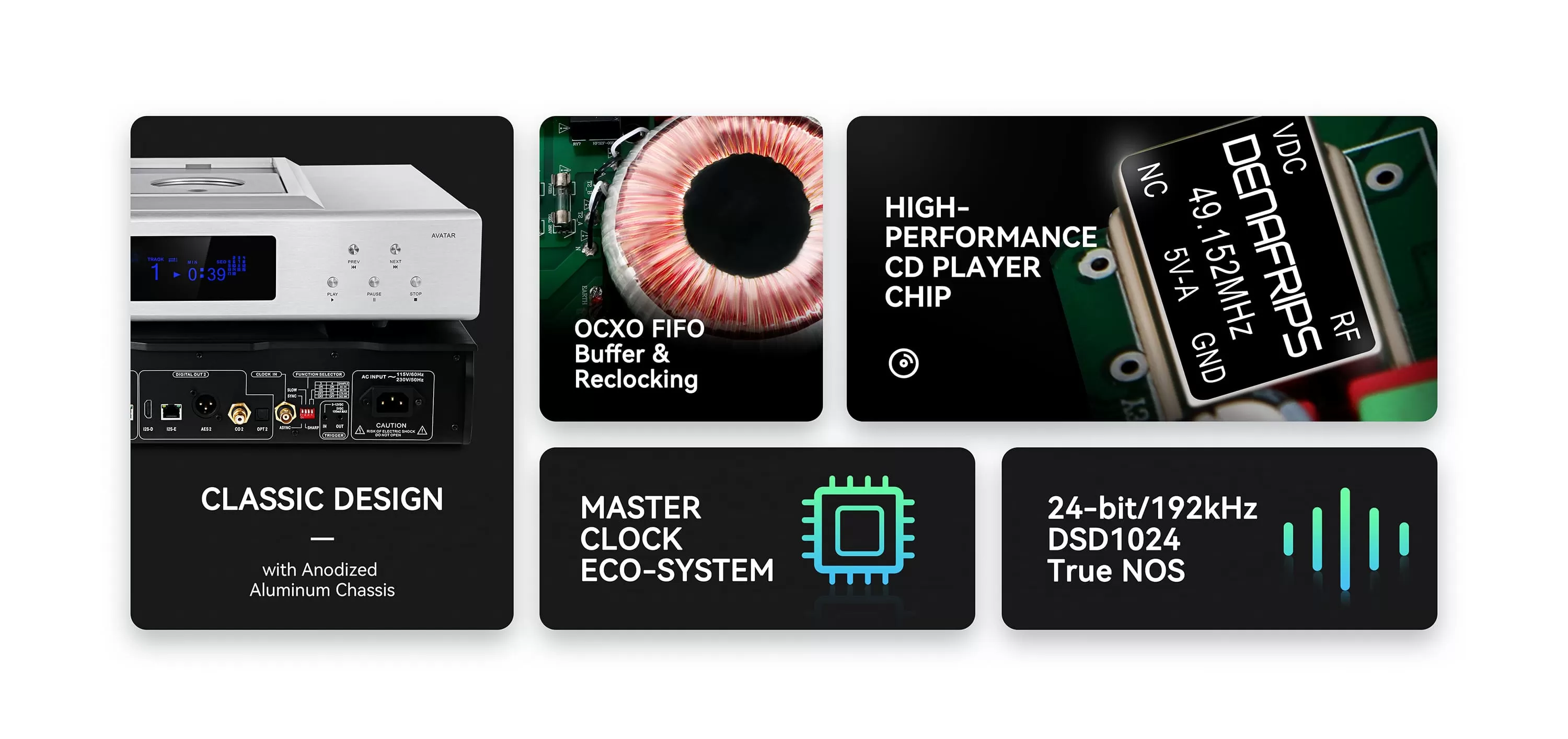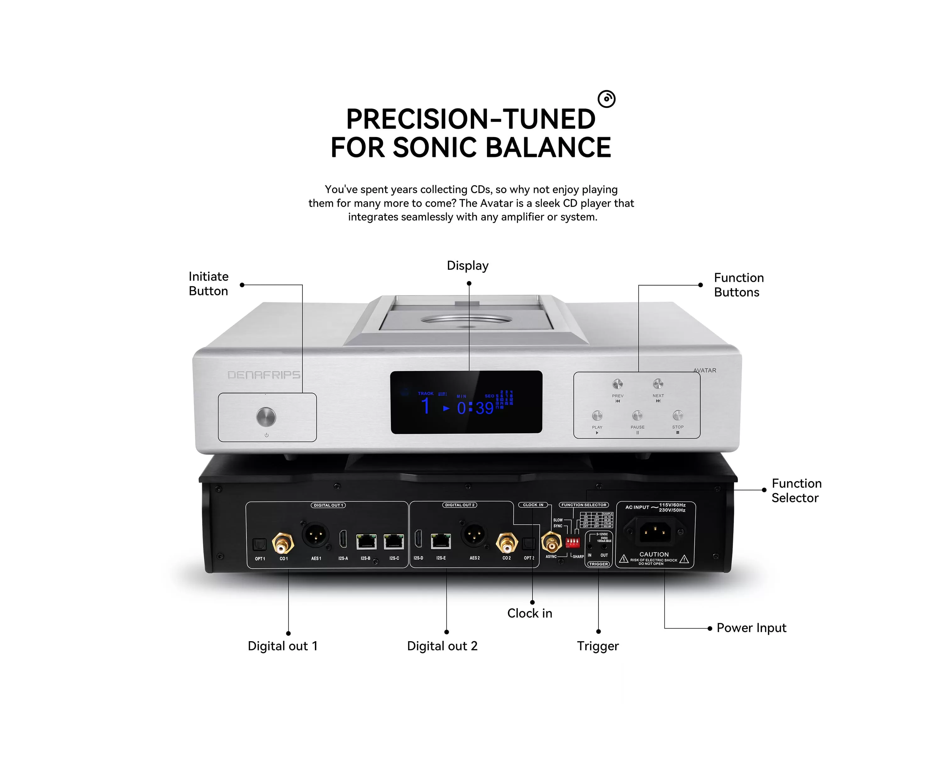 Denafrips Avatar — это не просто CD-привод, а цифровой транспорт нового поколения, сочетающий аналоговую основательность и цифровую точность. Он возвращает удовольствие от прослушивания компакт-дисков в эпоху потокового аудио, обеспечивая стабильность, масштаб и музыкальность.