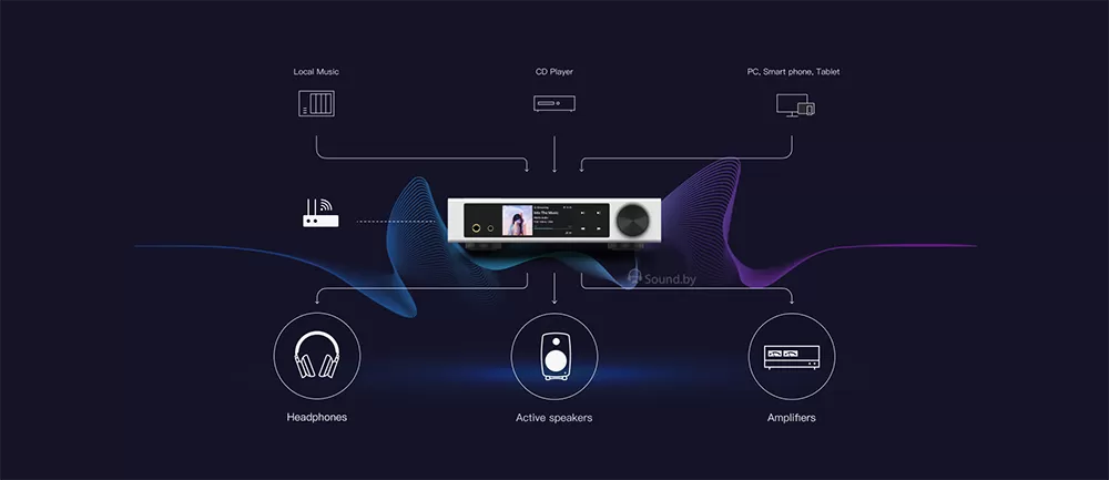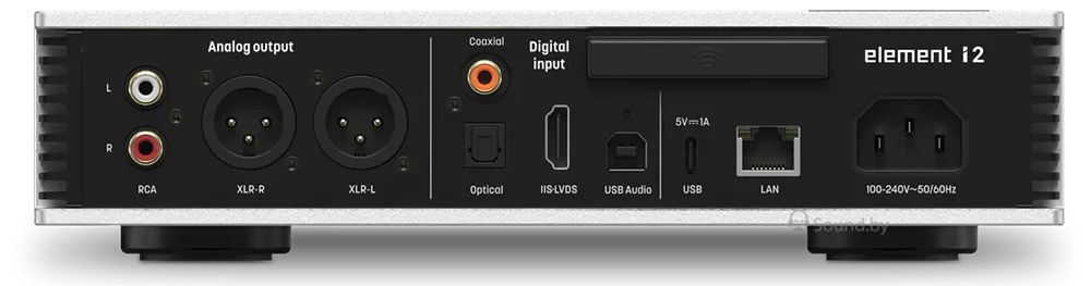 Сетевой аудиоплеер может использоваться в качестве предварительного усилителя, а для подключения наушников предусмотрены балансный 4,4 мм разъем и обычный 6,35 мм. Стример поддерживает все основные музыкальные приложения, включая Qobuz, Tidal, Spotify и другие. Поддерживает Roon Ready, DLNA/UPnP и AirPlay 2. Подавать цифровой сигнал на Matrix Element i2 можно как по воздуху, так и через гигабитный порт Ethernet, а также IIS, USB и другие физические разъемы.