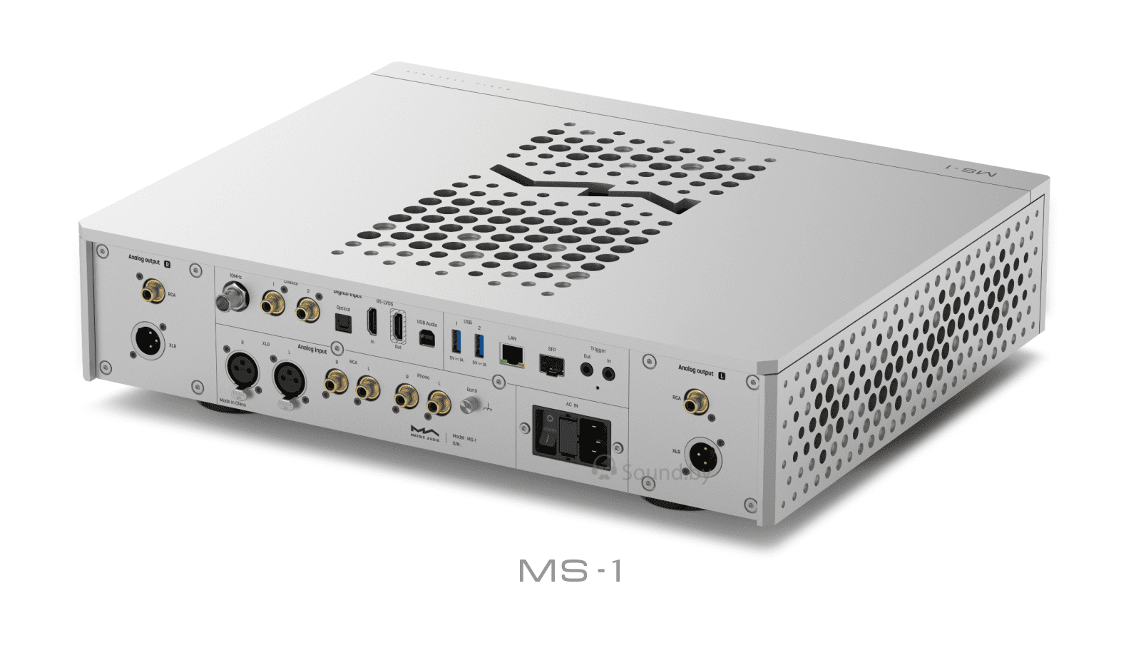 Модели MS-1 и MS-1 Pre оснащены двумя парами линейных входов и одной парой входов фонокорректора. Линейные входы XLR и RCA позволяют интегрировать в вашу цифровую аудиосистему любое устройство с аналоговым выходом. Встроенный фонокорректор поддерживает MM- и MC-картриджи, что позволяет напрямую подключать к аппарату проигрыватель виниловых дисков. С помощью высокоточного АЦП аналоговые аудиосигналы преобразуются в цифровые данные и направляются в блок цифровой обработки с применением фильтров PCM. Эти сигналы также могут выводиться через порт IIS-LVDS.