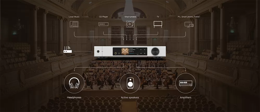 Element X2 способен проигрывать музыку с вашего мобильного телефона или планшета, используя беспроводное Wi-Fi соединение. Сетевые возможности устройства задействуются при использовании Wi-Fi или стандартного подключения Ethernet кабелем. Плюс аппарат поддерживает протоколы DLNA и Airplay 2. Matrix Element X2 также может быть использован в связке с популярной платформой Roon.