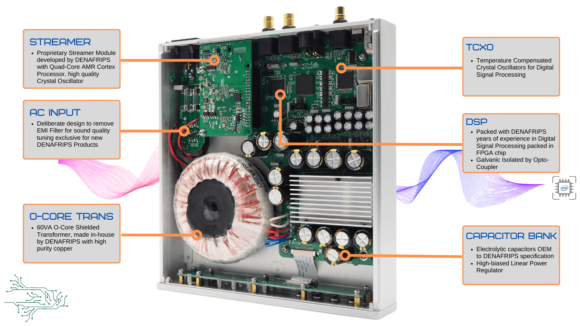 • Поддержка синхронизации с флагманскими ЦАП Denafrips, такими как Terminator II и Terminator Plus.
