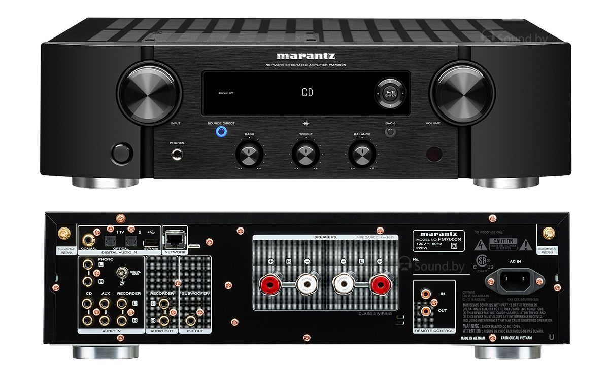 Модель Marantz PM7000N сочетает в себе функции полноценного потокового стримера и высококлассного аналогового интегрального усилителя. В аппарате задействована топология схем с обратной связью по току и фирменные дискретные усилительные модули третьего поколения HDAM SA3. Такая конструкция позволяет минимизировать уровень шумов, увеличить скорость нарастания выходного сигнала, повысить динамический диапазон и значительно расширить диапазон частот, обеспечивая превосходное качество звучания при прослушивании как обычных стереозаписей, так и Hi-Res-аудиоформатов. В итоге, согласно информации производителя, обеспечивается более динамичный, точный и детальный саунд. В тщательно проработанном сильноточном блоке питания Marantz PM7000N установлен экранированный тороидальный трансформатор и пара высокоемкостных конденсаторов (каждый по 15000 мкФ). При этом обеспечивается мощность в 60 Вт при нагрузке в 8 Ом. Цепи модели оснащены качественными аудиофильскими комплектующими, а для охлаждения применяются радиаторы, изготовленные из алюминия.Благодаря поддержке беспроводной многофункциональной экосистемы HEOS перед усилителем звука открываются большие возможности в плане доступа к таким потоковым сервисам, как Spotify (Free или Premium), Amazon Music HD, Deezer, Tidal и пр. Данный аппарат можно интегрировать в беспроводную мультирум-инсталляцию, построенную на базе HEOS-устройств. Для управления Marantz PM7000N предусмотрены пульт и приложение. Командовать «интегральником» также можно посредством голосовых помощников Google Assistant, Amazon Alexa, или Apple Siri.