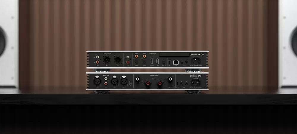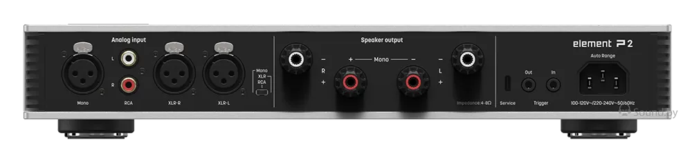 В стереофоническом режиме Element P2 обеспечивает выходную мощность 230 Вт на канал при нагрузке 4 Ом и без особых усилий контролирует полочные или небольшие напольные колонки.
