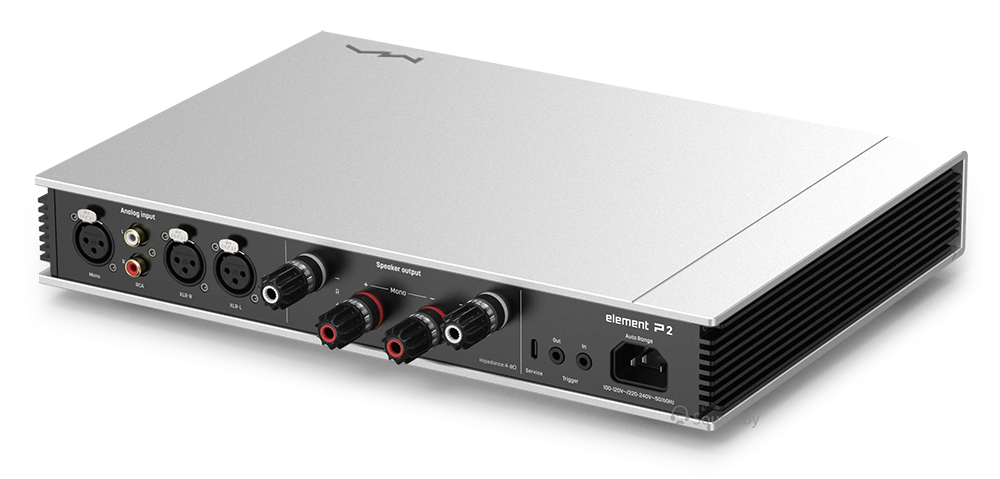 Matrix Audio Element P2 - усилитель мощности звука, способный работать в стерео или монорежиме.Matrix Audio позиционирует его, как «оптимального партнёра» для X2. Аппарат функционирует в современном и экономичном классе D. Набор разъёмов предусматривает как традиционное, так и балансное подключение. Есть возможность выбора режима работы – в стерео либо моно. И опять же, внимание к деталям: даже банальные акустические клеммы – это WBT-0703Cu! Не говоря уже про виброизолирующие ножки…
