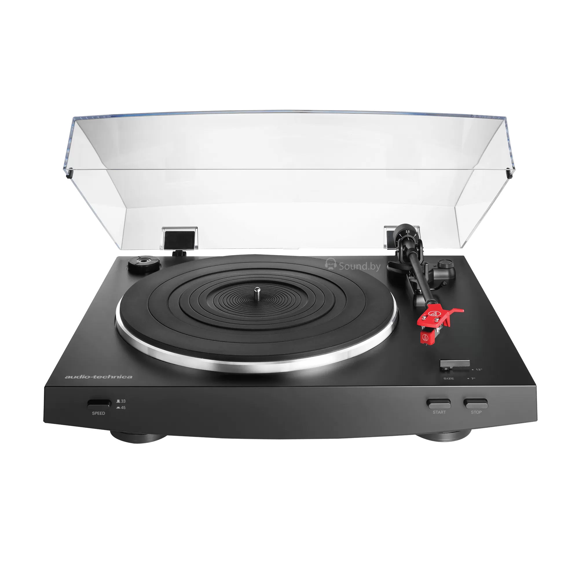 Тонарм в проигрывателе Audio-Technica AT-LP3 оснащен подъемником с гидро-демпфированием, которое обеспечивает плавное перемещение звукоснимателя. Автоматическая система управления проигрывателем позволяет начать прослушивание музыки, нажав всего одну кнопку. Механизм сам подведет картридж к началу первой композиции на виниловой пластинке и опустит его на вводную дорожку. Для правильной работы автоматики необходимо задать диаметр установленной пластинки (7 или 12 дюймов) с помощью соответствующего переключателя. По окончании воспроизведения диска тонарм вернется в исходное положение, а кроме того прослушивание можно остановить в любой момент, просто нажав кнопку «Стоп». Это существенно повышает удобство и безопасность пользования проигрывателем, с которым справится даже неопытный пользователь. Проигрыватель рассчитан на воспроизведение дисков на скорости 33 и 45 оборотов в минуту, переключение которой производится нажатием одной кнопки.