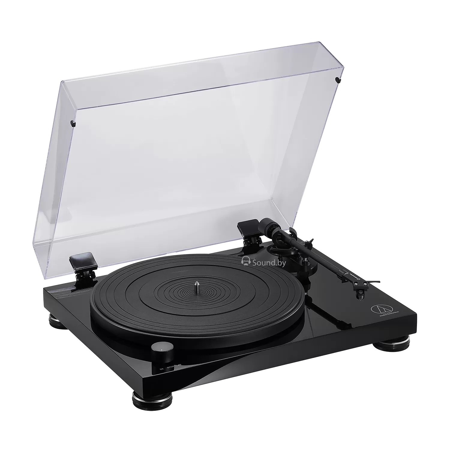 - ременным приводом с двумя скоростями: 33-1 / 3 и 45 об / мин;