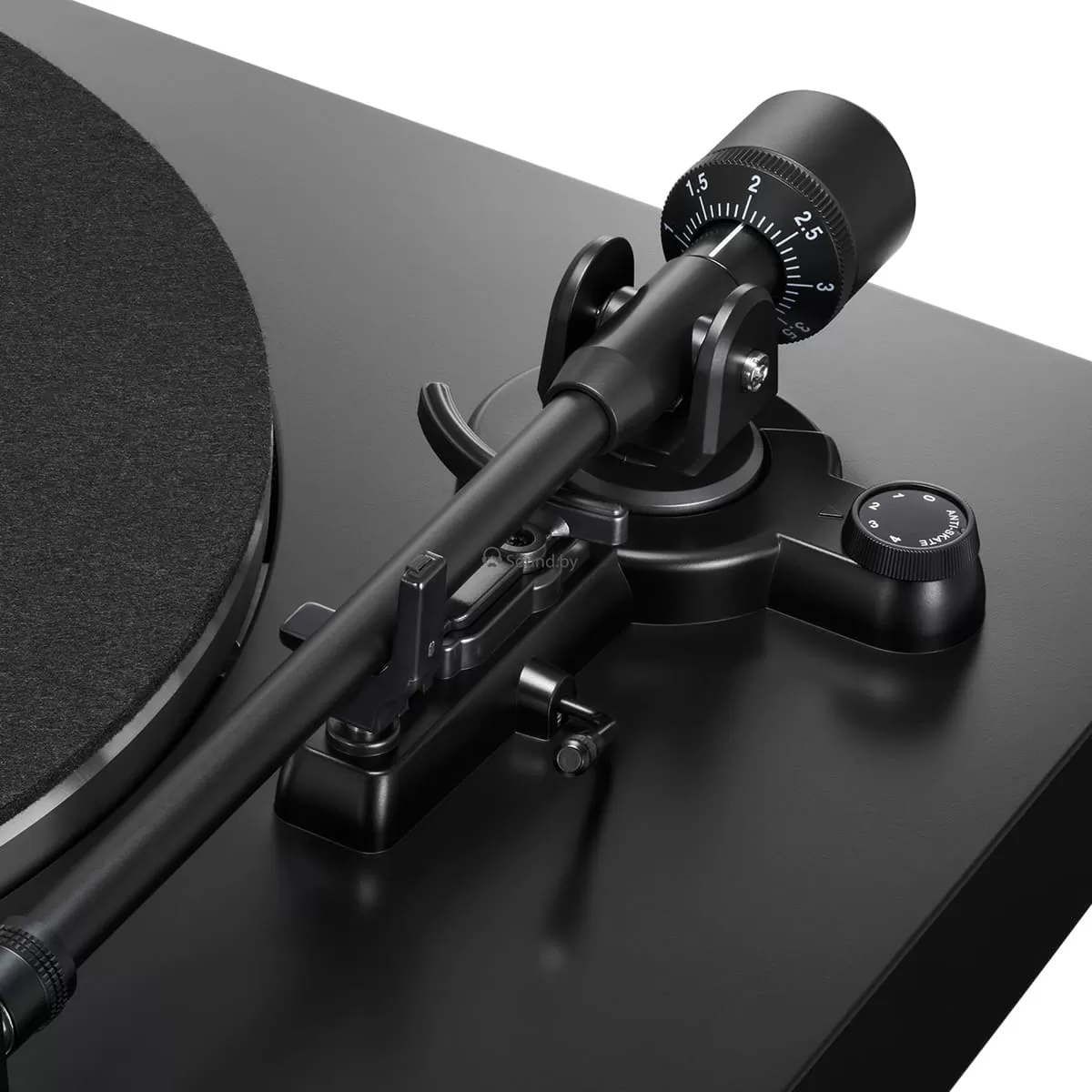 Прямой алюминиевый тонарм: Обеспечивает точное отслеживание дорожек пластинки.